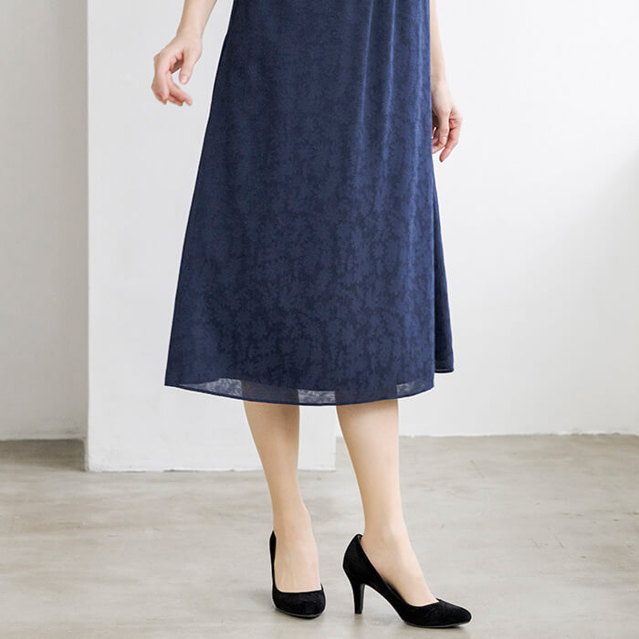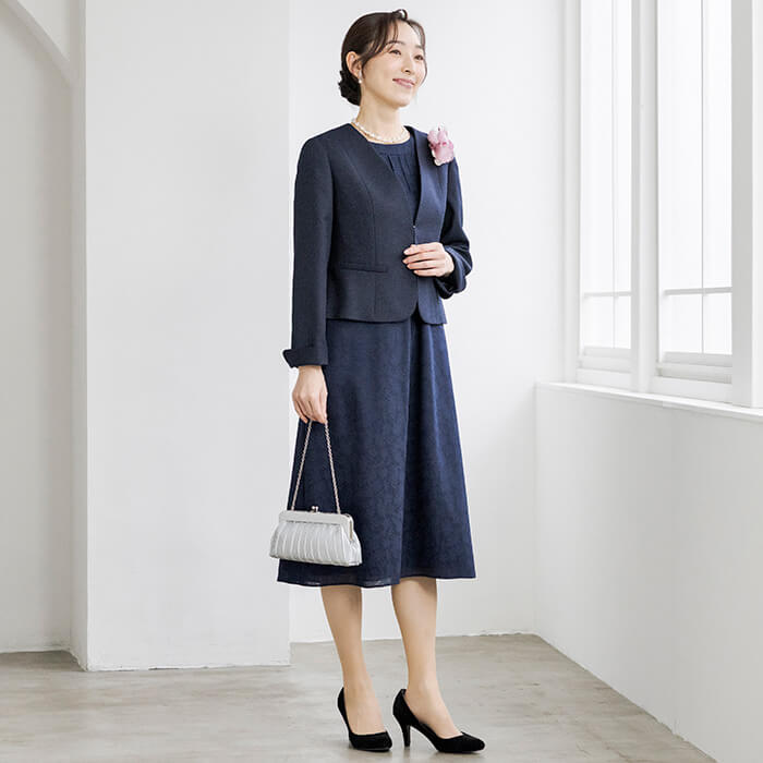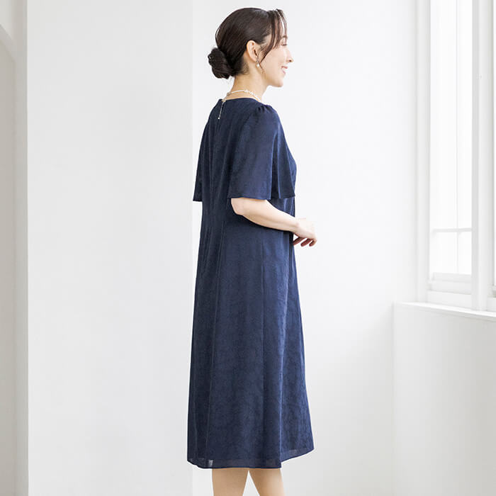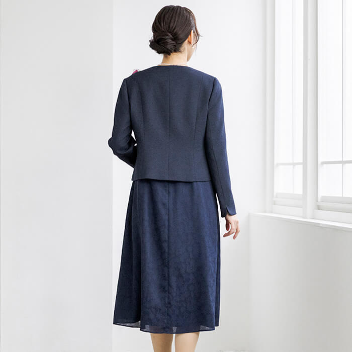 結婚式やお顔合わせはもちろんのこと、ジャケットをお仕事に、ワンピースにカーディガンを羽織ってお食事などにと着回せる便利なアイテム。パターンは「少しゆったり」タイプを使用。「標準」に比べてウエストを中心にゆとりを持たせています。