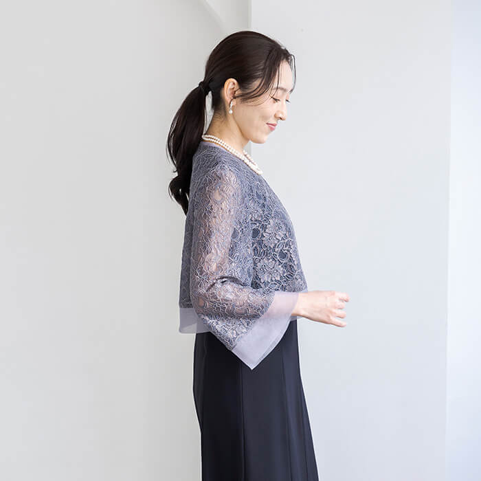 レースとオーガンジーの軽やかボレロ風ジャケット