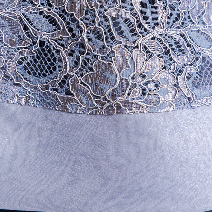 襟ぐり・袖口・裾まわりに施した涼し気なオーガンジーがポイント。