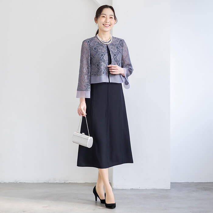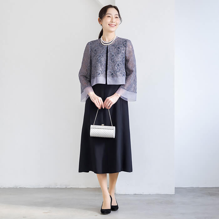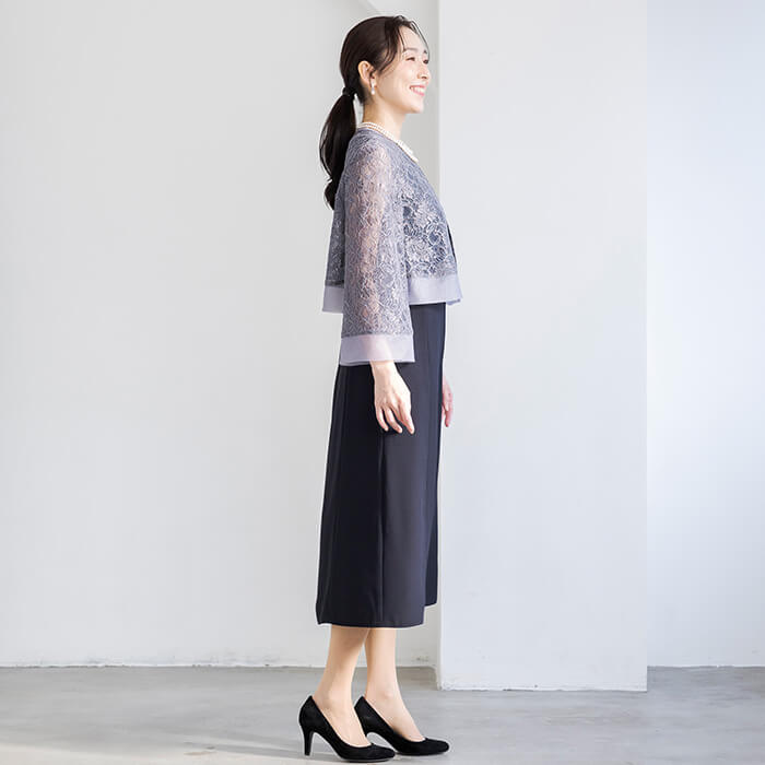 ブライダルから、食事会など綺麗めなスタイルとして着用できます。サイズは30代〜40代キャリアの標準的なパターン。