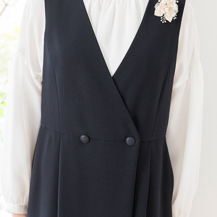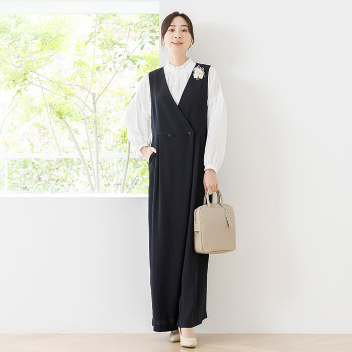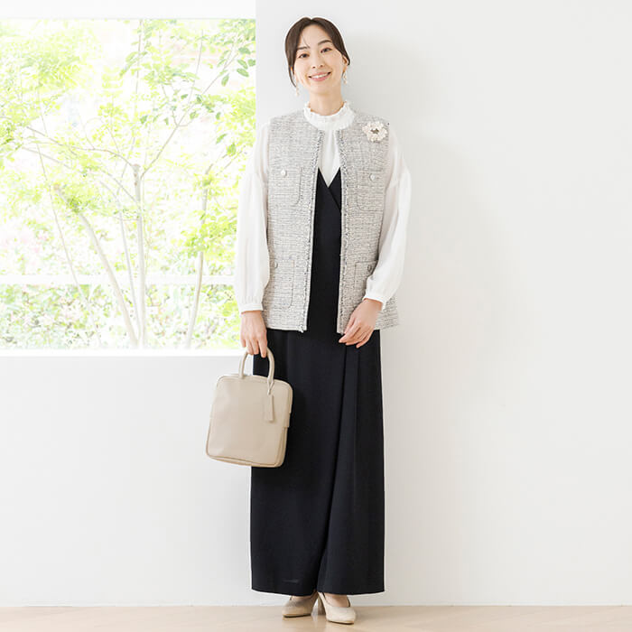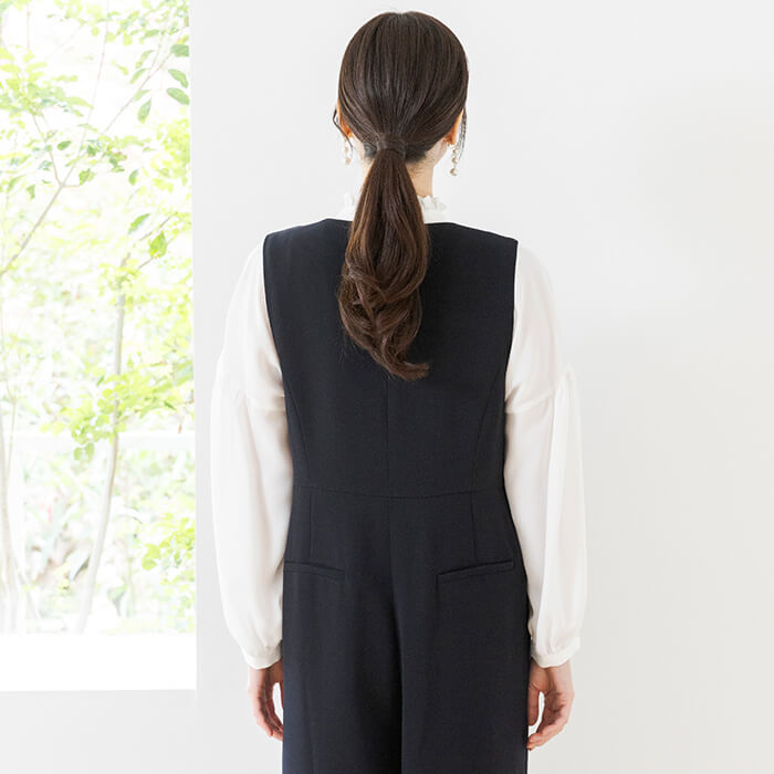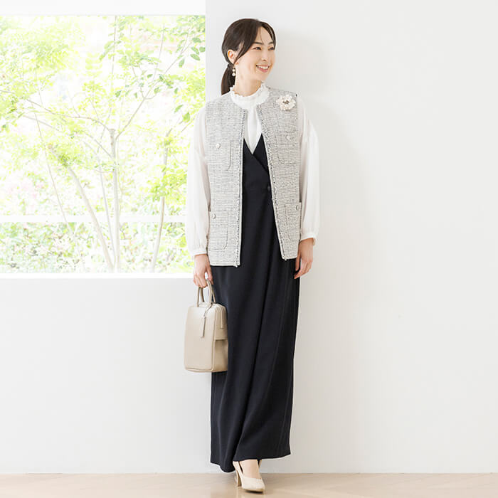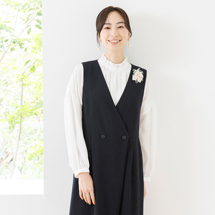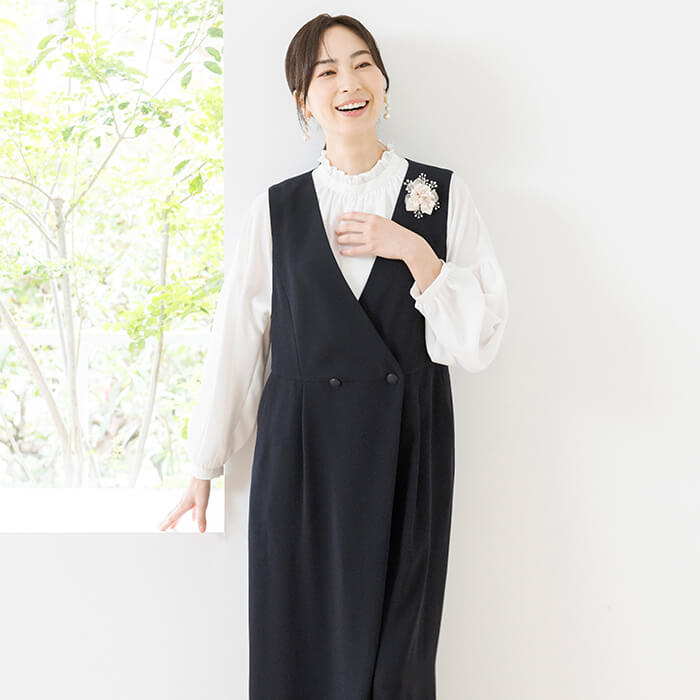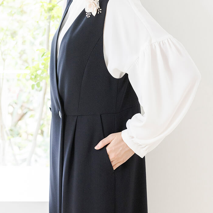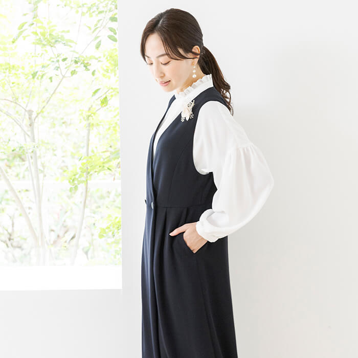 ノースリーブタイプなので様々なインナーと相性が良く、お手持ちのアイテムと合わせて、デイリー使いからセレモニーイベントまで、様々な着こなしが可能です。 キャリア(30〜40代)を中心とした、メリハリのあるボディラインの方向けの「標準」パターンを使用しています。