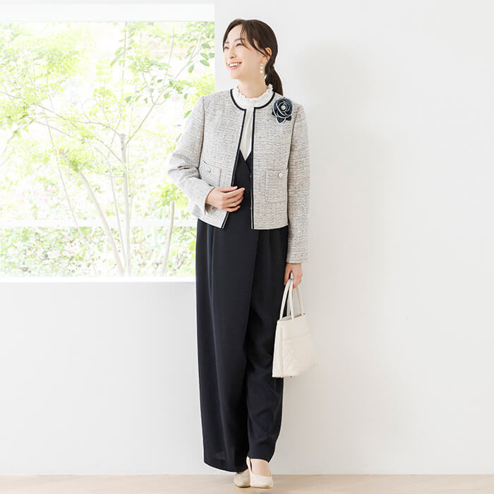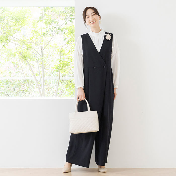 洗濯方法:ご自宅で洗濯可 フロントファスナー ポケット付き(4箇所) ※モデル着用: ブラウス / 2606902-12 ジレ / 7804901-31 ジャケット / 7810900-31 イヤリング / 5551991-10 ネックレス / 5519695-10 コサージュ(桜)/ 5503906-12 コサージュ(サークル)/ 5553912-21 コサージュ(ネイビー)/ 5503911-73 バッグ(オフホワイト) / 5520910-12 バッグ(ベージュ) / 5820302-31 ※モデル:身長165cm 9号着用 |